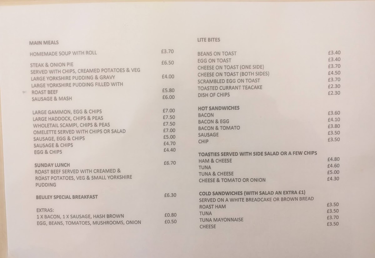 Beuley Cafe offers a straightforward and comforting menu that fits perfectly with its relaxed, local atmosphere. Whether you’re dropping in for a morning pick-me-up or a casual lunch, the selection leans towards classic café staples with familiar, hearty choices.